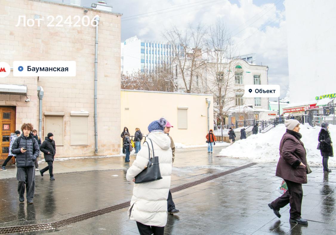 Лот № 224206 Предлагается на продажу коммерческая недвижимость, расположенная по адресу: улица Бауманская, Центральный административный округ города Москвы.Объект находится в непосредственной близости от станции метро «Бауманская», до которой можно добраться менее чем за одну минуту пешком.В районе наблюдается интенсивное автомобильное и пешеходное движение, что обеспечивает высокую проходимость и хорошую транспортную доступность.Помещение обладает значительным рекламным потенциалом, предоставляя возможности для размещения рекламных вывесок и других информационных носителей.